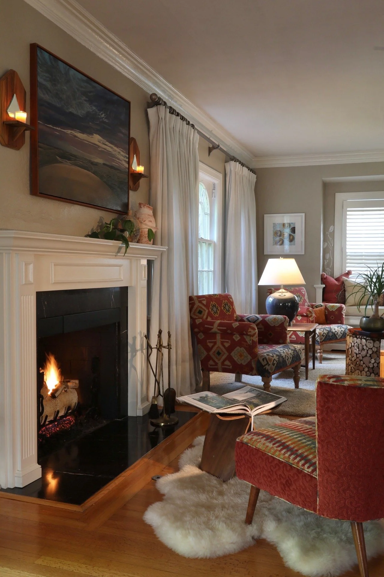 This 1929 Dible Tudor blends historic charm with a fresh, expressive spirit. From the arched front door to the leaded glass, the home wears its history proudly. But step inside, and it comes alive with bold color, rich texture, and a fearless mix of old and new.