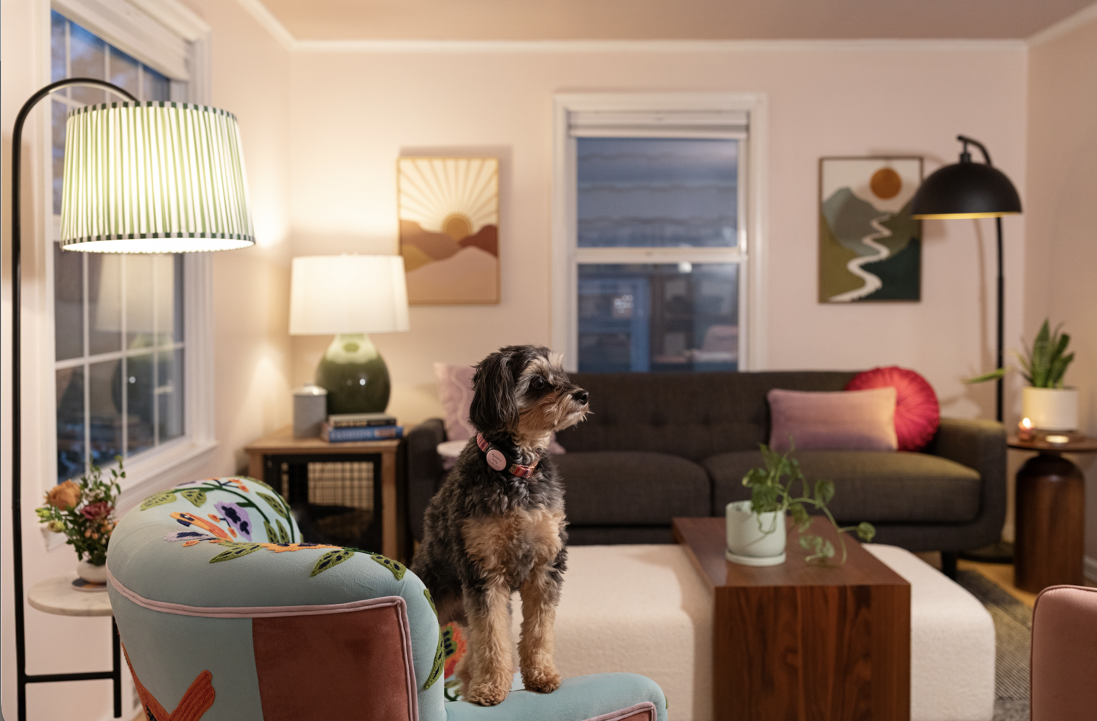This Cape Cod style home in Waldo, Missouri was built in 1939 at the edge of Kansas City’s prewar expansion. This project was especially meaningful as the client is a dear friend, ready to start a new chapter in her life. It was a joy to shape a feminine, refined home that feels entirely her own — an expressive, warm space that honored the house’s history, while adding plenty of softness and joy for her and her sweet miniature Aussie-Poodle, Penny, to settle into together.